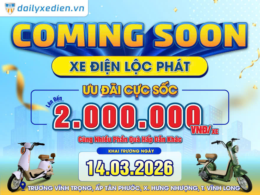 Ngày 14/03/2026, Bluera Việt Nhật tiếp tục mở rộng với sự ra mắt của Bluera Việt Nhật Lộc Phát tại Tỉnh Vĩnh Long. Đây sẽ là địa chỉ mua sắm xe điện chính hãng uy tín, mang đến cho khách hàng những sản phẩm “An Toàn Và Chất Lượng” đặc biệt tiết kiệm chi phí cùng nhiều ưu đãi hấp dẫn trong dịp khai trương.